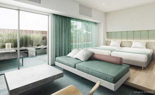 2023年5月に開業予定の「ITOMACHI HOTEL 0(ゼロ)」は、ホテル運営において、実質的に電力エネルギーを消費しない「ゼロエネルギーホテル」。