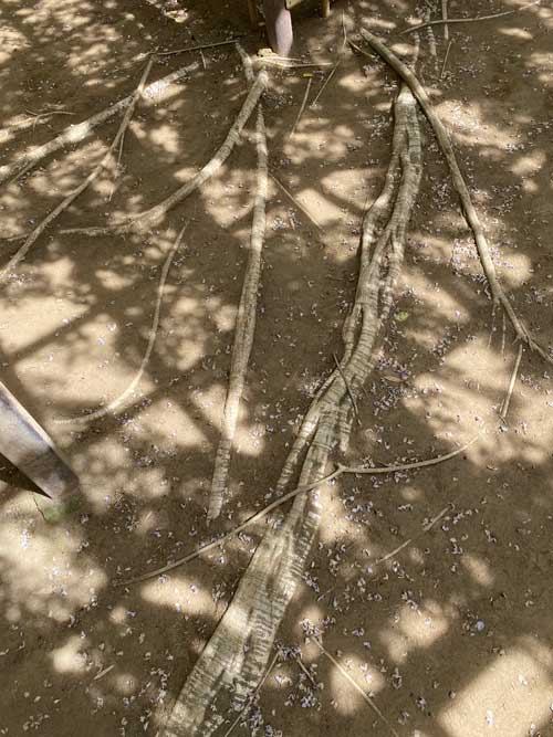 藤の根は地面を鷲掴みするように伸びている